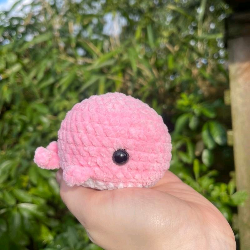 This Mini Whale Plushie is an adorable addition to any stuffed toy collection. Handmade with crochet, this cute whale is perfect for kids and adults alike who love sea creatures. With its soft material and small size, it's easy to cuddle up with and take on the go.